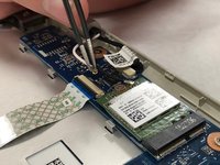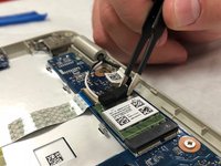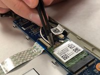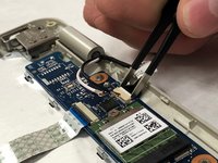 Remove the black webcam connector by pulling backwards with the tweezers.