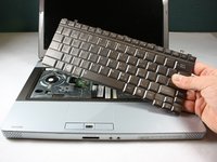 Completely remove the keyboard from the laptop by lifting up the part closest to the screen, and then gently pulling out the bottom half.