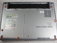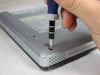 Flip the laptop over and locate all seven screws on the bottom of the laptop.