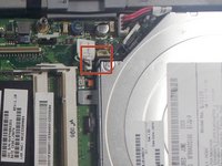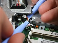 Using plastic opening tools, pop out the ribbon cable from the motherboard.