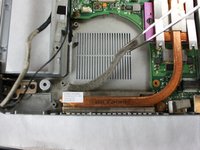 Locate the piece of electrical tape holding the screen wired, on top of the fan.