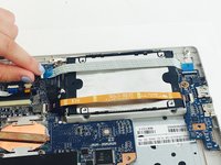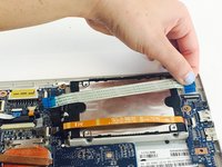 Unplug both ribbons by flipping back the white tabs on either end of the ribbons and gently pulling the ribbons out.