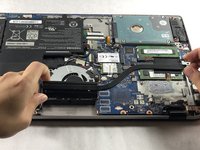 Pry the heat sink away from the laptop with two hands at both ends and remove it from the device.