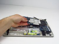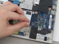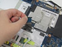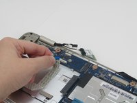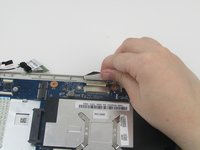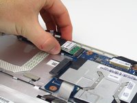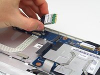 Gently pull on the ribbon attached to the motherboard near the WiFi card. In needed, use your fingernails to carefully nudge the tab out of its slot.