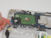 Pull up on the ribbon beneath the hard drive to lift the hard drive upwards.