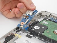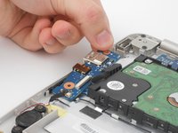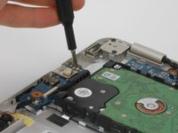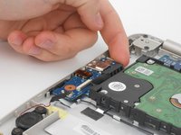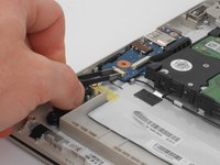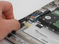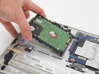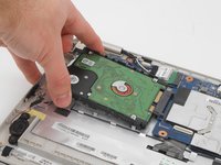 Gently pull the hard drive towards the edge of the laptop to disconnect the hard drive from the laptop circuitry.