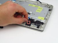Using the ESD Safe Tweezers Blunt Nose gently pull on the plastic connector that attaches the speaker wiring to the soundboard to disconnect the soundboard from the laptop.