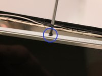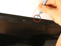 Use the plastic opening tool to separate the front panel of the laptop from the back panel, pulling the front panel off the laptop.