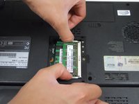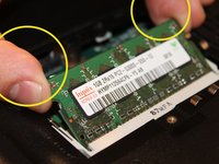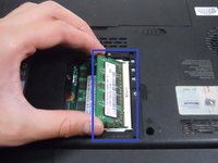 Replace the RAM by sliding the new one into the angled socket similarly to how you removed the old RAM.