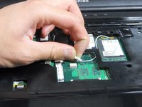 Remove the old speakers from the laptop and undo the cable from the cable holders before removing the it all.