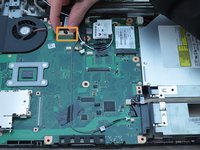Using your fingers, remove the large connector from the top right corner of the motherboard.