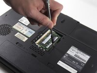 Remove the panel that houses the RAM chips by removing the screw that secures it into its spot.