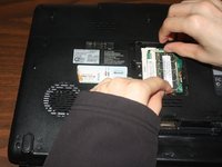 Remove the RAM module by pulling it out at the angle it was rotated to.