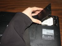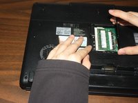 Unscrew the RAM cover and rotate the cover up to remove it. The screw should not be fully removed from the cover itself.