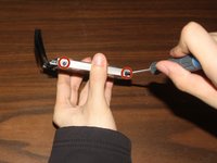 Unscrew all the screws indicated by the red circles (The bottom two screws are 10.75mm and the top screw is 5mm).