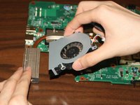 In order to replace the fan in your device the hard drive, keyboard, motherboard cover, and the motherboard need to be removed.