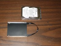 To separate the hard drive from the caddy, unscrew the two screws.