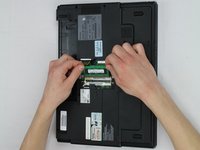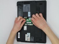 Pull the flaps apart on either side of the RAM chip. It will pop upwards.