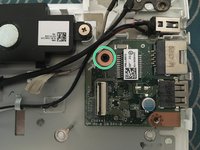 Disconnect the cable connecting the Ethernet / USB card to the motherboard. It is a ZIF type connector.
