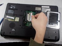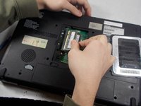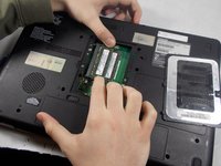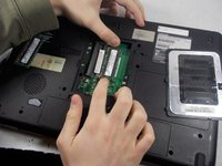 You’ll need to do the same as the top for the bottom set of RAM, so gently push outward on the metal pieces above and below the RAM.
