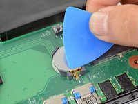 Use an opening tool to pry up the ethernet connector cable from its socket near the RAM module.