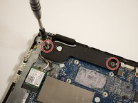Using a Phillips #00 screw driver, remove the two 7.0 mm screws that secure the left speaker to the motherboard.