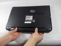 Close the laptop lid and flip it over so that Toshiba logo is facing down.
