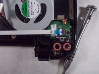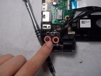 Remove the two 6.5 mm Phillips head screws indicated using a Phillips #00 screw driver.