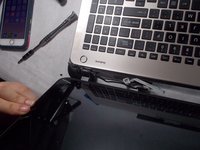 Unscrew the four 6mm screws from each of the laptop hinges using a Philips head #00 screwdriver.