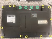 Flip the laptop over and remove the twelve M2.5x6.5 screws.
