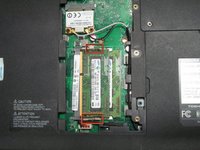 Now, you can simply flip the laptop standing on its left side, pull the connector out from where the memory cover was, and then yank the jack from the adhesive holding it.