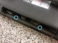 Unscrew the three 4.6 mm screws holding the panel using a #1 size Phillips head screwdriver. The panel is centered on the bottom of the laptop.