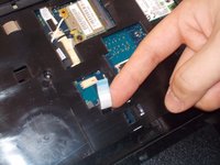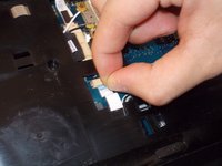 Use a spudger to pry under the corner of the thin piece of plastic located above the keyboard.