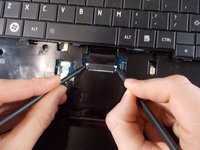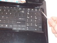 Use a spudger to pry under the corner of the thin piece of plastic located above the keyboard.