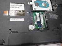 Lift the back plate off the laptop, exposing the RAM and Hard Disk.