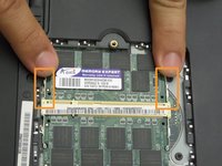 Use your fingers from separate hands to pull back the two silver clips away from the sides of the RAM stick.