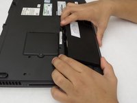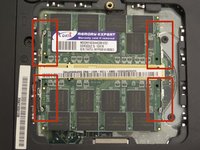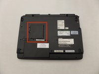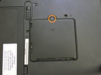 Accessing the RAM of the laptop involves removing a screw in order to open an access hatch on the bottom of the laptop. Once opened, the RAM sticks can be unplugged from their slots once released from the metal prongs holding them in place.