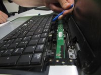 Insert the tool into the groove surrounding the laptop and pry until the keyboard “pops” out of the laptop body.