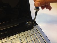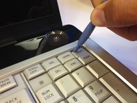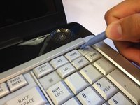 Place the head of a plastic opening tool underneath the plastic strip lining the top of the keyboard, right above the "PGUP" button.