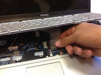 Lightly lift from the side that was popped up earlier in order to pop the rest of the strip off of the laptop.