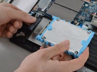 Remove the hard drive from the device by gently pulling on the blue plastic hard drive cover.