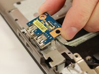 Lightly pull up the USB Port from the metal supports and take out of the laptop.