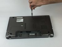 Remove the 3mm Phillips #0 screw from the back of the optical disk drive.