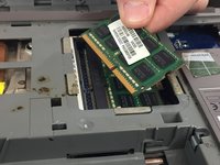 Lift the RAM module to an angle of about 30 degrees and slide it out.