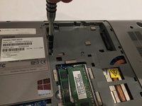 Using a Philips #0 screwdriver, unscrew the 1.5mm screw located near the left edge of the opening near the mother board.