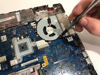Unscrew the two 1.5mm screws using a Philips #0 screwdriver by the head mounting holding down the fan.