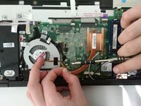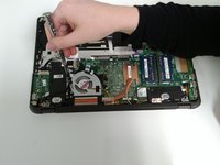Disconnect the left speaker from the motherboard.