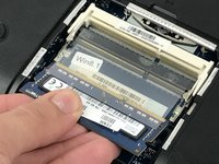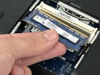 Lift the RAM module to an angle of about 30 degrees and slide it out.