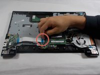 Disconnect the power button strip by flipping up the white plastic clamp that connects it to the motherboard.