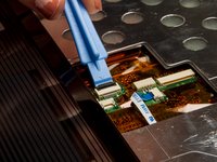 Lift up the gate on the ZIF socket to release the ribbon.